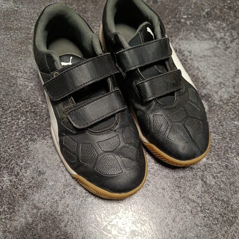 Puma lasten sisäpelikengät, koko 36, unisex. Musta ja sininen väriyhdistelmä, kumipohja. Pari kertaa käytetyt.
