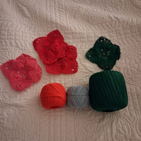 Lankoja, virkkuukoukkuja ja virkkaustarvikkeita, hyväkuntoisia. Myydään pakettina.