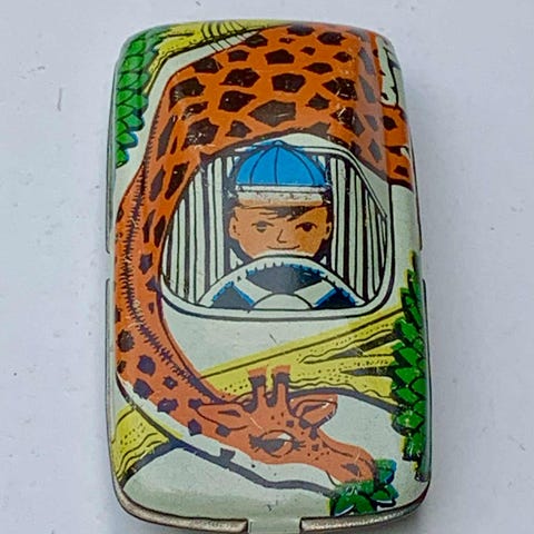 Hakusanoja: peltilelu peltiauto peltiapina venäläinen vintage