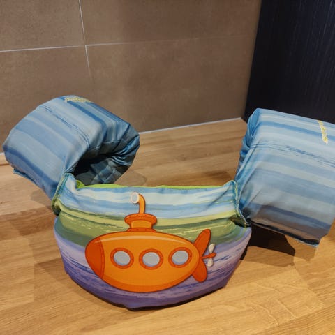 Todella hyvä ja hauska lasten uima kelluke. Pitää lapsen pinnalla hyvin ja remmit ei hierrä ihoa, suositellaan n. 35 kg asti uinnin harjoittelun apuna.