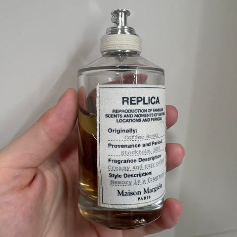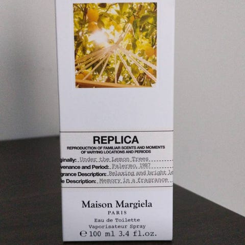 Maison Margiela Replica tuoksuvesi, 100 ml pullo. Tuoksu on kuvattu pakkauksessa ja sisältää tietoja valmistuksesta ja ainesosista. Sopii henkilöille, jotka etsivät Maison Margiela -tuoksua.