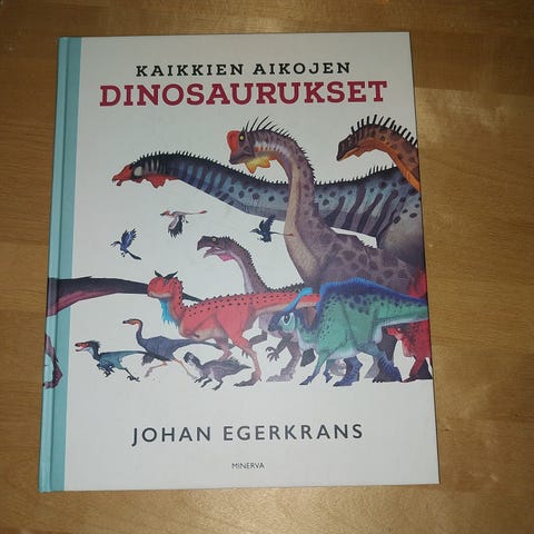 Myydään uudenveroinen dinosaurusaiheinen kirja: Hurjat dinosaurukset. Kirjassa isoja luukkuja ja paljon tietoa eri dinosauruksista.