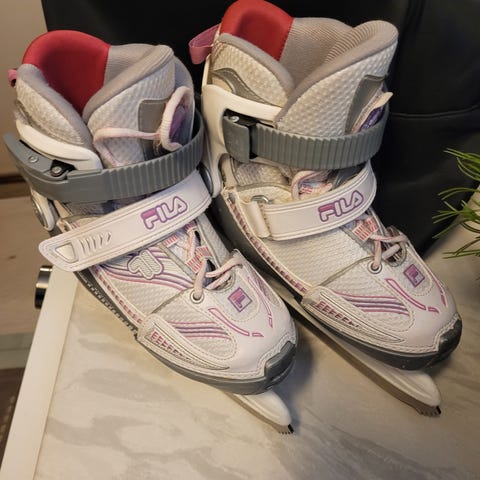 Filan säädettävät luistimet kokoa 29-32. Hyvät säätö- ja kiristysmahdollisuudet. Luistimissa kaunoluistimen terät.