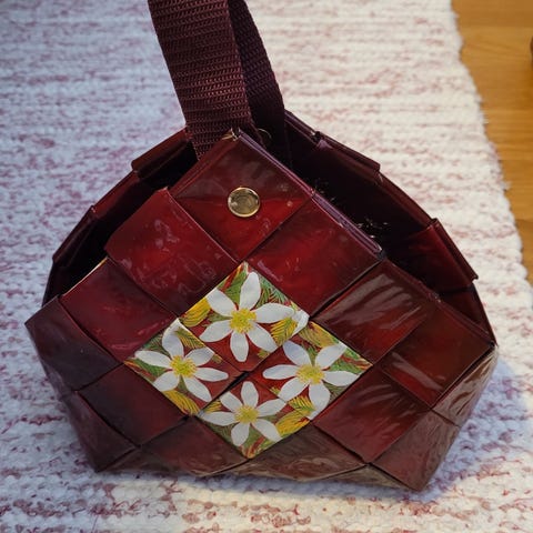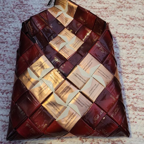 Myydään anopin puolesta kahvipusseista itsetehty koriste.