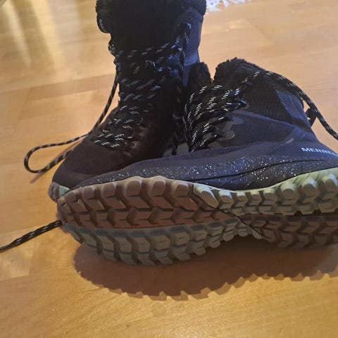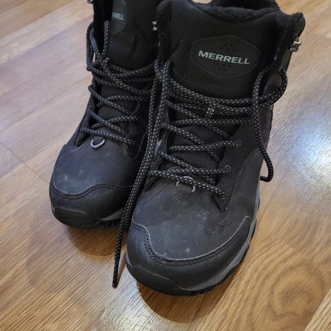 Merrell-talvikengät, koko 40, ruskea väri. Päällinen nahkaa. Kengissä on lämmin vuori ja pitävä pohja, sopivat kylmiin olosuhteisiin ja talvikäyttöön.
