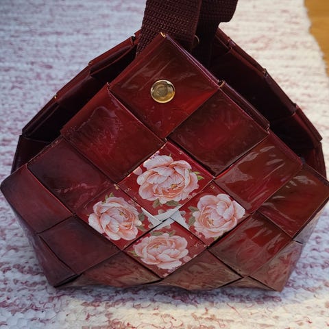 Myydään anopin puolesta kahvipusseista itsetehty koriste.