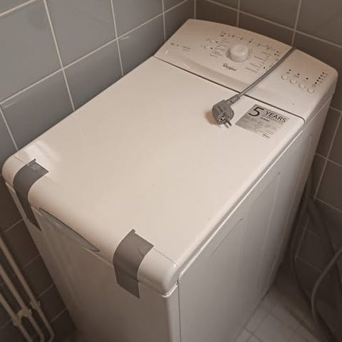 Whirlpool päältä täytettävä pesukone valkoisella värillä. Pesukoneessa on yläluukku, joka mahdollistaa pyykin täyttämisen koneen yläosasta. Soveltuu kotitalouskäyttöön. Annetaan pois muuton tieltä.