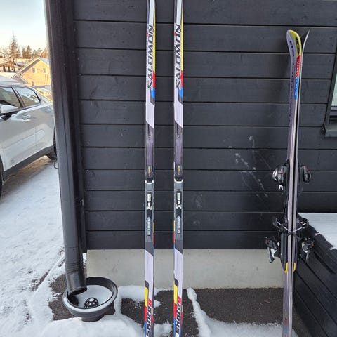 Myydään käytetyt Salomon Equipe 10 Skate luistelusukset, Salomonin SNS Pilot Junior Frex siteillä.