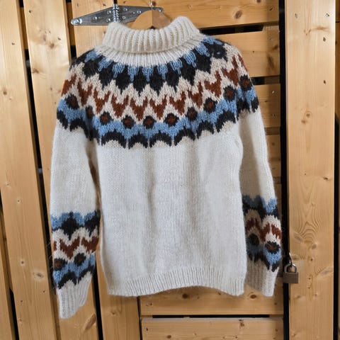 Neulottu Alafosslopi-villalangasta joka on paksumpaa ja lämmintä villalanka.