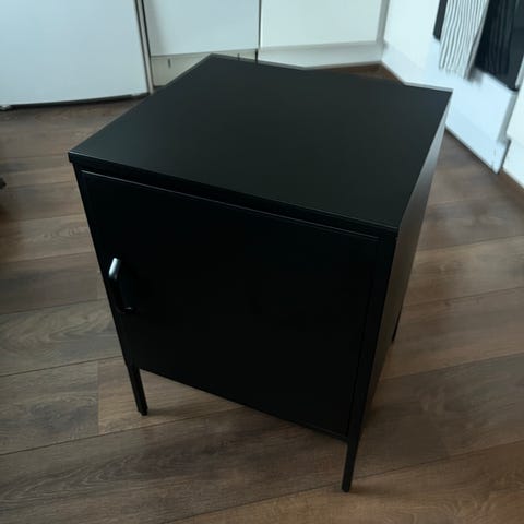 Ikean Gladom sivupöytä. Kuvista huomaa että maali hieman lähtenyt joistain kohdista mutta käytössä ei vaikutusta. Vain nouto.