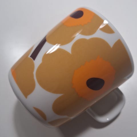 Käyttämätön, vain tarrat poistettu muki. Omaan makuun turhan iso. Vain nouto.