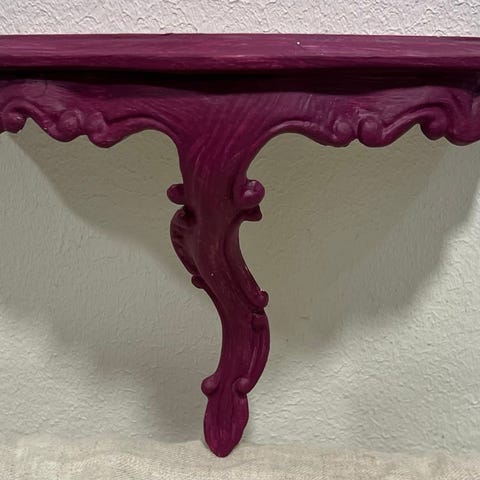 Talonpoikaisrokokoo pitkä ohut seinähylly myytävänä. Kunto ikäisekseen hyvä. Kannakkeet tallessa.