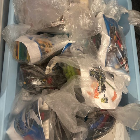 Laatikollinen erilaisia Lego City -legoja