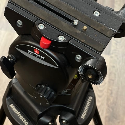 Käytetty Manfrotton tuleva jalusta pikakiinnityslevyllä.