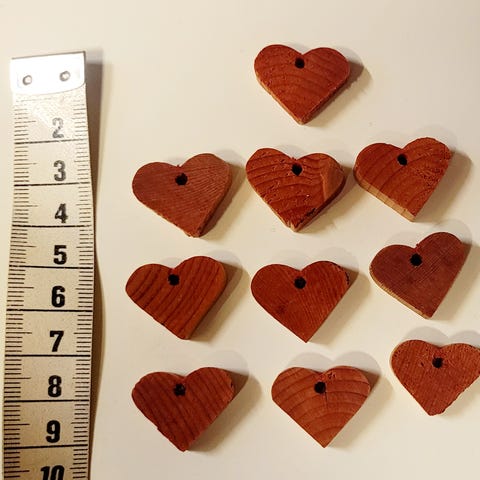 Aarikan puiset sydämet, koko 7 cm x 6 cm.