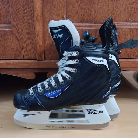 CCM luistimet lasten koossa 37. Mustavalkoiset perushokkarit, ajaa edelleen hyvin asiansa, vaan kävivät meillä pieniksi. Kärjissä nirhaumaa, joka ei käyttöön vaikuta mitenkään.