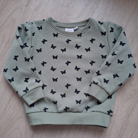 Myydään ihana Name it college koko 86 sanoisin silti, että hyvä ottaa käyttöön jo koossa 80. Nukkaa pinnassa, joka lähtee hyvin nukanpoistajalla.