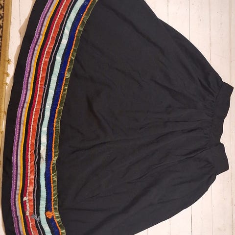 Ruskea villahame satiinivuorella, koko M, valmistettu villasta Hame sopii erilaisiin käyttötarkoituksiin ja tarjoaa lämpöä ja mukavuutta. Pituus 72cm, lantio 98cm, vyötärö 72cm.