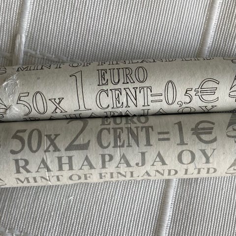 Käyttämättömiä kolikkokapseleita Euro-kolikoille 2 x 40 kpl, yht. 3 €