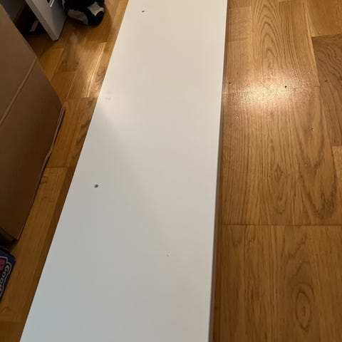 Pitkään käyttämättömänä ollut Ikean Lack-hylly, mukaan tulee hyllynkannatin sekä ruuvit.