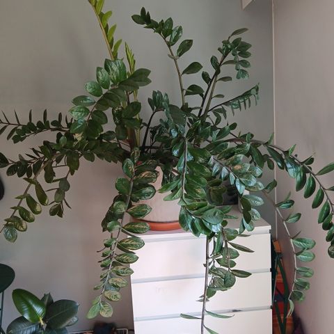 Korkeus ruukkuineen n. 48 cm. Saviruukku ja -lautanen. Itse pistokkaasta kasvatettu.