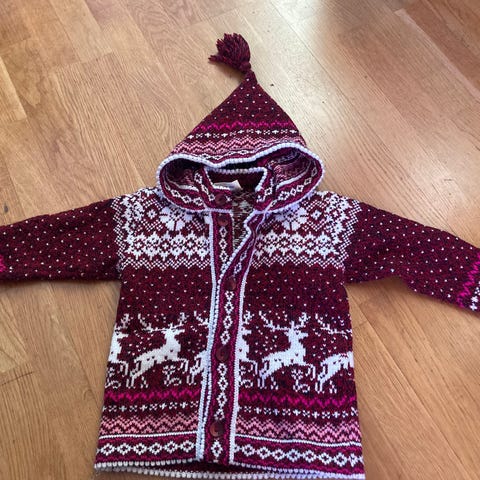 Myynnissä uusi villatakki kokoa 100. 100 % villaa, tehty Virossa.