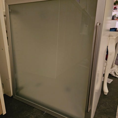 Rungot olleet yhteen ruuvattuna ja n. 40mm reikä kaapin sivuilla alhaalla takareunan lähellä. Jokaisessa kaapissa myös pohjassa reiät led spottivaloja varten. Spotit saa mukaan halutessaan. Pari pientä ruuvin reikää myös kaapin pohjassa ja sisällä. Olleet seinällä ripustettuna. Mukaan saa ripustuskiskon seinä-asennusta varten.