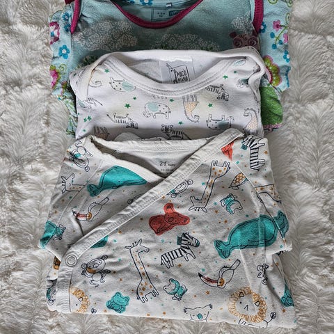 Muumi lastenvaate ja muuta merkki koossa 62-68, väriltään kirjava. Soveltuu tytöille. Tuote sisältää erilaisia kuoseja ja värejä, kuten raidat ja pinkin sävyt. Materiaalitiedot eivät ole saatavilla.