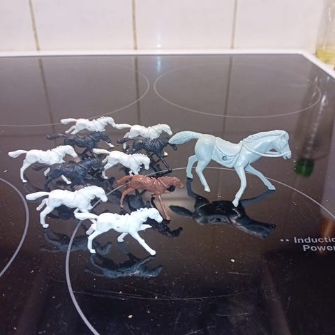 Vintage muovieläimiä, hevoset. Kuluneita.