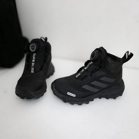 Adidas Terrex lasten talvikengät, koko 29, poikien malli. Kengät ovat mustat.
