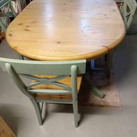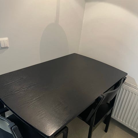 Ruokapöytä kunnoltaan siisti. Normaalista käytöstä johtuen erittäin pieniä ja lähes huomaamattomia pintanaarmuja.