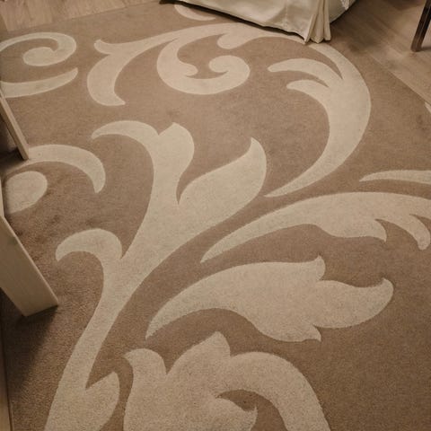Todella vähäisessä käytössä ehtinyt olla. Imuroitu huolella aina läpi. Ei eläimiä. Myydään muuton alta pois. Matto on konepestävä, joten se toimii yhtä hyvin nuorisohuoneessa kuin ruokapöydän tai sohvapöydän alla.