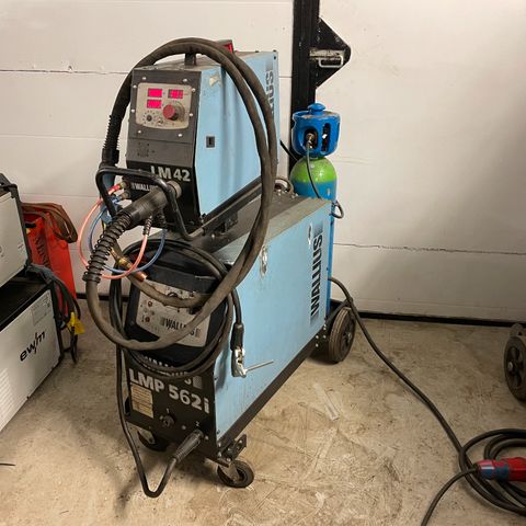 Waltus LMC 240 hitsauskone, joka sisältää kaapelit ja hitsauspistoolin. Laite soveltuu erilaisten metallien hitsaukseen ja on varustettu säädettävillä asetuksilla.