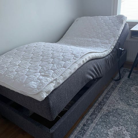 120 cm leveä siisti moottorisänky paksulla petauspatjalla. Jämäkät patjat. No. 5 v vanha patjan suojaa käytetty, ei ollut säännöllisesti käytössä. Lemmikkikoti. Painava, ei mahdollista kuljettaa eikä nostaa, nouto Ilmajoen keskustasta