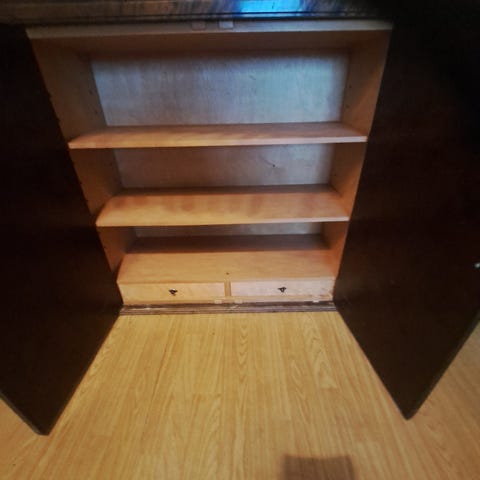 Täyspuinen, oikeasti vanha kaappi. 3 ovea, 3 laatikkoa alhaalla.