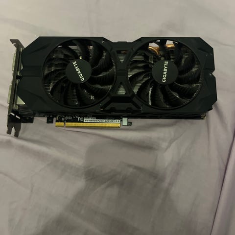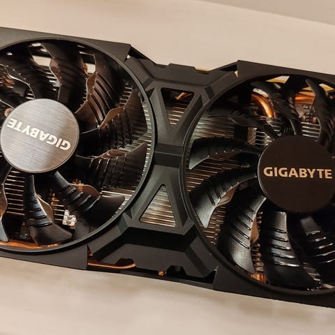 GIGABYTE GTX 960 Dual-fan näytönohjain, jossa on kaksi tuuletinta jäähdytykseen. Liitännät sisältävät DVI, HDMI ja DisplayPort. Soveltuu tietokonekäyttöön grafiikan käsittelyyn.