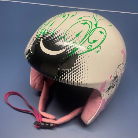 Lasten violetti laskettelukypärä, koko arviolta M 55-58 cm. S/M