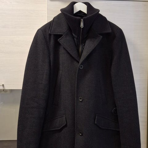 Vähän käytetty villakangastakki vetoketjulla.