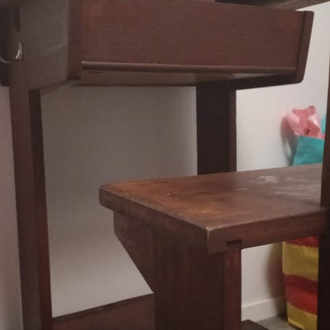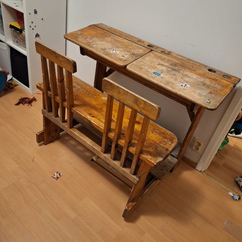 IKEA lasten pulpetti. Tukeva, puinen pulpetti. Tarroja ja piirustus sotkua kannessa