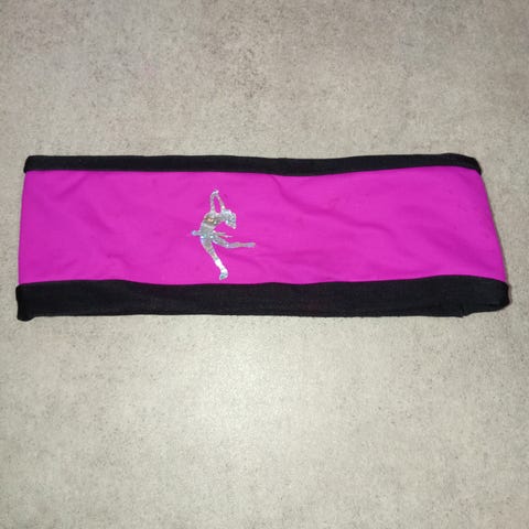 Pinkki luistelupanta jossa kimaltava lumihiutale.