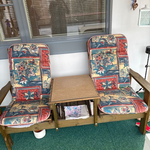 Myydään muuton myötä pois hyväkuntoinen sarja kalusteita terassille tai parvekkeelle, johon kuuluu sohva, pöytä sekä kolme erillistä moduulia joita voi yhdistellä oman maun mukaan. Kuvissa sohvalle jatkettu divaani kahdesta moduulista. Sohvassa säädettävä katos jonka saa halutessaan nostettua suojaamaan auringolta.