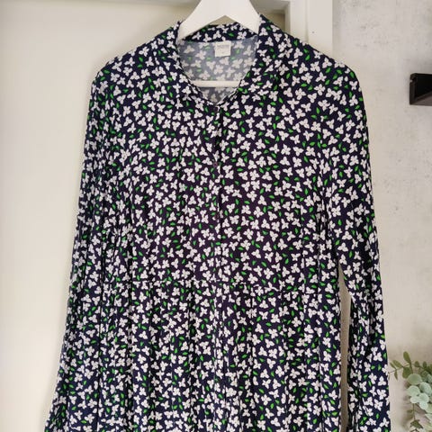Myydään Noom merkin tummansini-valko raidallinen hihaton pitkä mekko, koko XL.