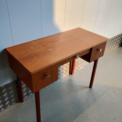 Pöytä koostuu näistä osista: Pöydän levy (joka on nyt irroitettu tilanpuutteen vuoksi). Jalka kahtena kappaleena ja niiden kaksi metallipainoa sekä metallitanko joka ruuvautuu näiden läpi pöytälevyyn.