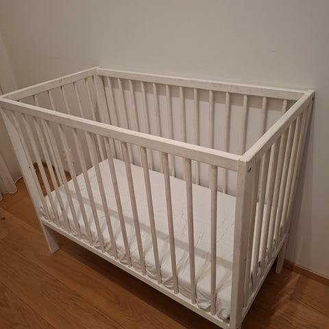 Hyvässä kunnossa sänky, patja ja suojauspatja tulee mukaan