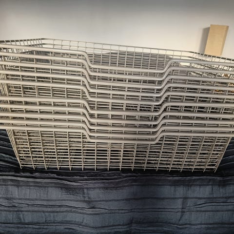 Komplement verkkokori 7 kpl. Yhteishinta 7 kappaleelle 40€. Kunto muuten erittäin hyvä mutta jossakin kulmassa pientä kulumaa maalissa. Ilmoitetut mitat ovat ikean sivuilta. Todellinen leveys on 68,6 cm, syvyys 53,6 ja korkeus 16 cm