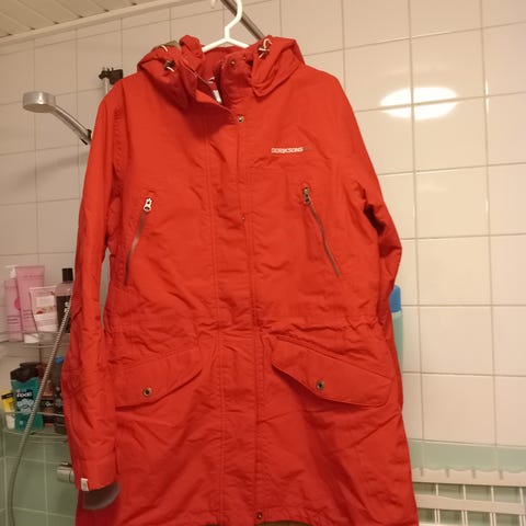Didriksons Alba Wns Coat. Väri tummanharmaa, lähes musta. Muutaman vuoden vanha, mutta erittäin hyvässä kunnossa. Näppärä kaksisuuntainen iso vetoketju ja lisäksi nepparikiinnitys. Vyötäröllä kiristysmahdollisuus. Irrotettava huppu. Isot taskut. Lämmin tikkivuori.
