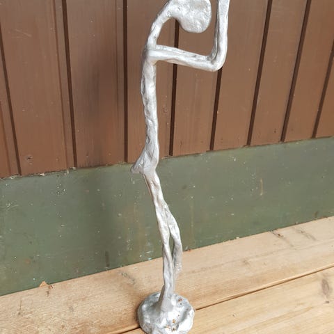 Puinen Viulistipoika-patsas. Korkeus 38 cm.