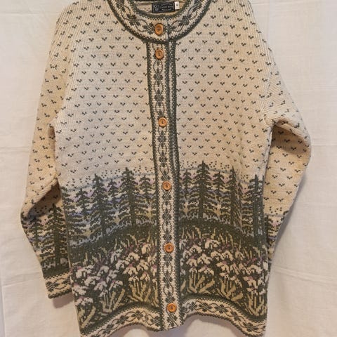 Virolainen villapaita. Mitat kai-kai 53, pituus niska-helma 67 ja hiha 52.