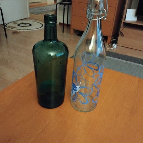 Myydään ehjät ja puhtaat isot vanhat lasipullot.