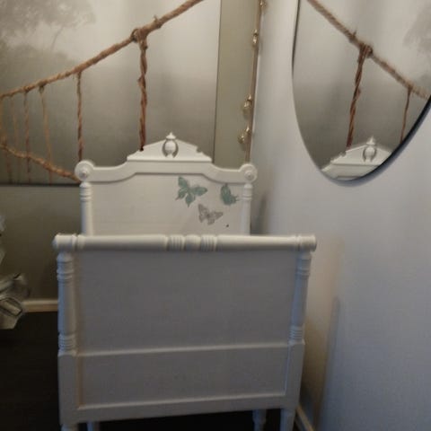 Myydään ihana vanha nukensänky, päästä vedettävä malli. Patinoitunut pinta, toisessa päässä on liimajälki teipistä, poistettavissa. Tukeva ja ehjä.